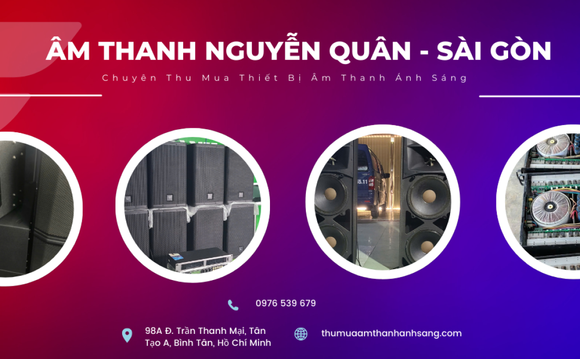 Nguyễn Quân Sài Gòn là đơn vị chuyên thu mua các thiết bị âm thanh ánh sáng tại TPHCM. Với nhiều năm kinh nghiệm trong ngành, chúng tôi cam kết mang đến giá trị cao nhất cho khách hàng, từ việc đánh giá, định giá cho đến quy trình thu mua nhanh gọn.